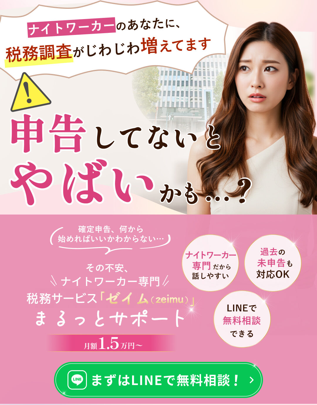 ゼイム(zeimu)は “キャバ嬢・ホスト・夜職向け” だから、説明も対応も全部わかりやすい。